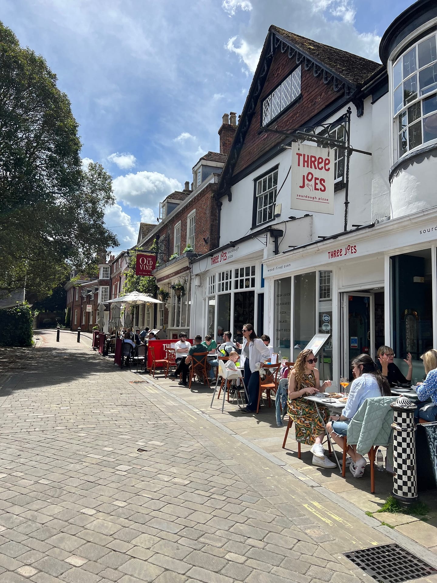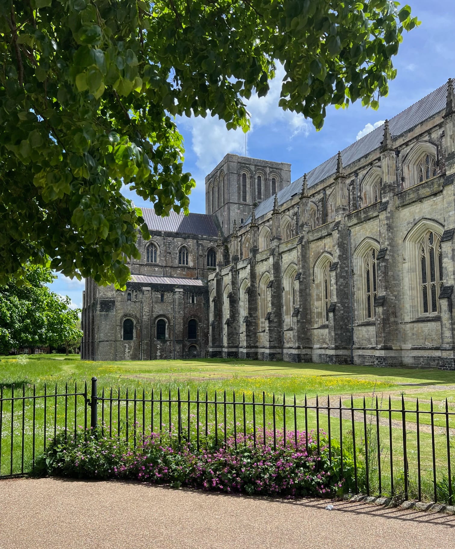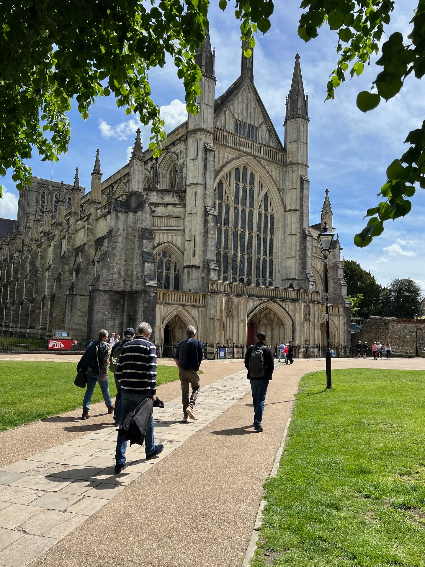 Nous faisons une pause à Winchester : déjeuner dans un pub, puis balade dans le centre ville. Belles anciennes maisons, magnifique cathédrale. On ira la visiter une autre fois, le coût de l’entrée est beaucoup trop élevé. On pourra y aller à la fin de nos vacances, un jour à 17h30 à l’heure de l’office, c’est gratuit.
