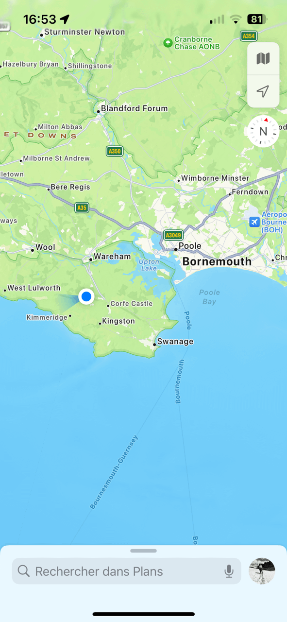 Le soleil est au rdv ! Nous prenons l’autoroute, direction nord d’abord (contournement sud de Londres), puis direction ouest/sud ouest.
