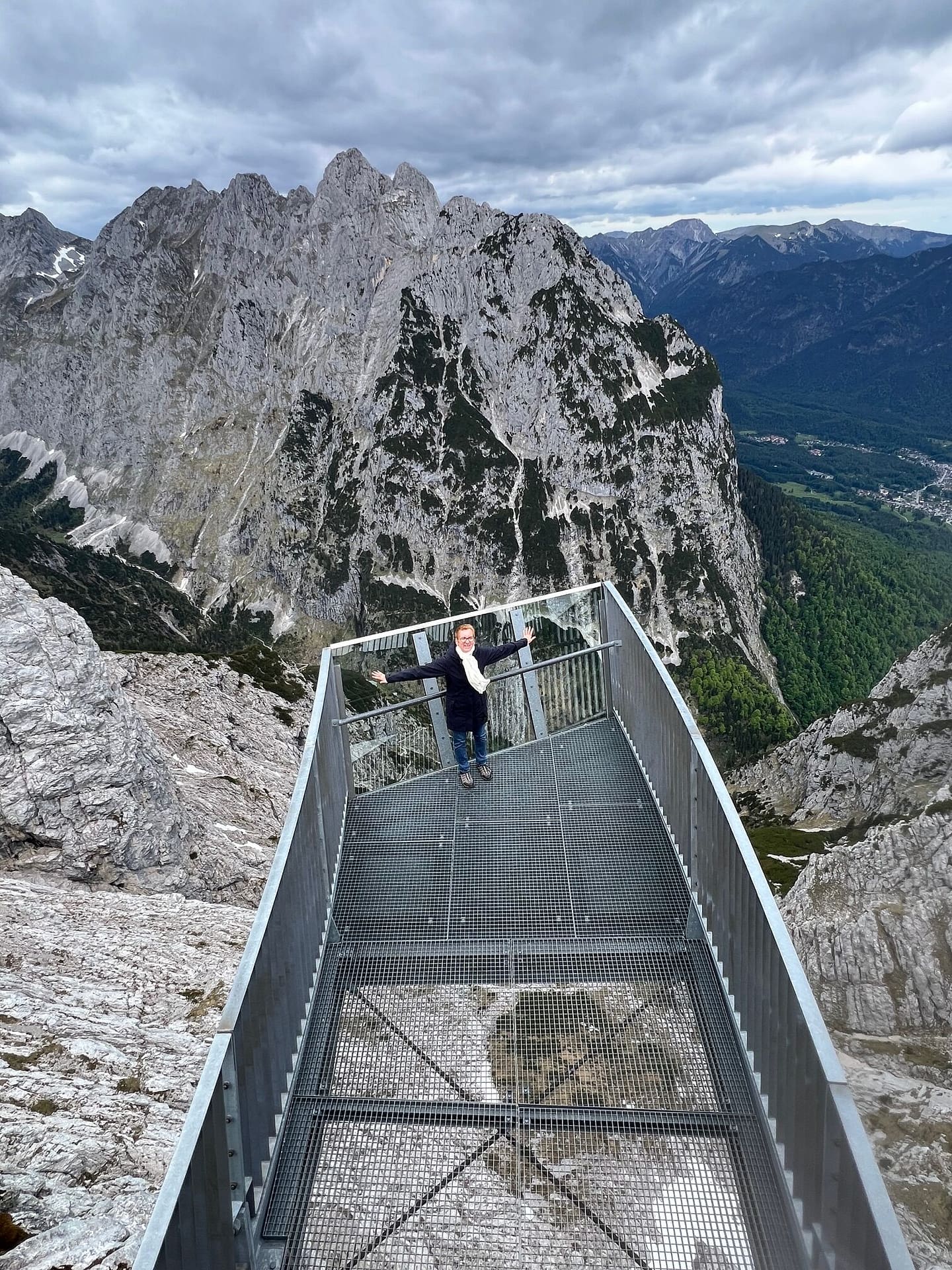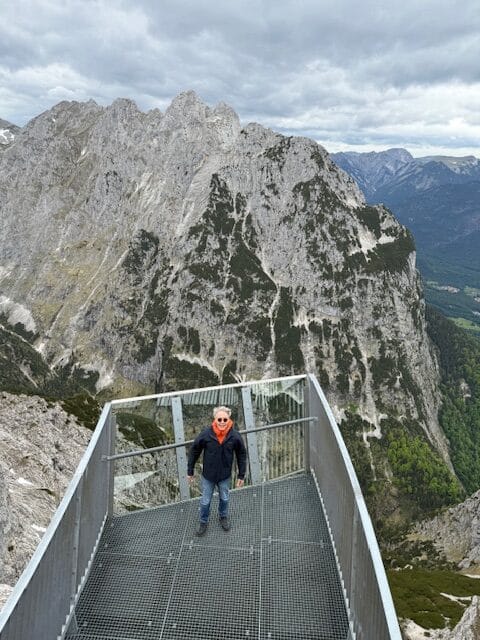 Arrivés en haut, on va voir la vue sur 2 plateformes (ALPSPIX) incroyables au-dessus du vide et avec en plus beaucoup de vent. Elles font 24m de long, et bougent avec le vent !