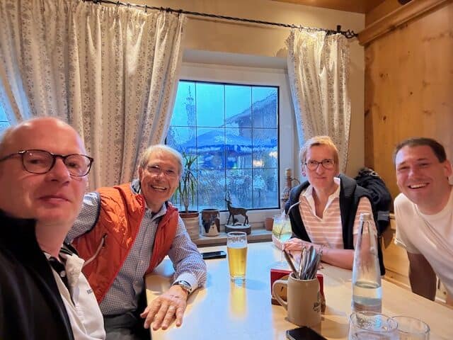 Pierre et Frank retournent à la piscine/sauna. Je prend un thé et j’écris ces quelques lignes ! Diner dans un restaurant du village, dernier diner ensemble pour ces super vacances…