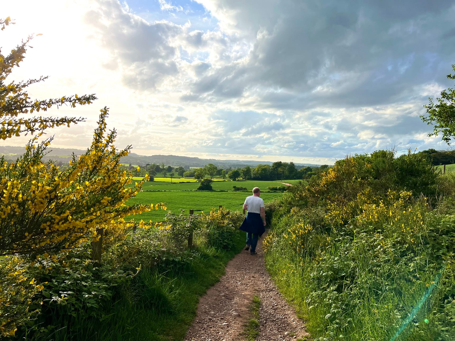 On arrive à l’hôtel en fin d’après-midi. On en profite pour aller faire une balade à pied dans les environs : belle campagne anglaise très verte.