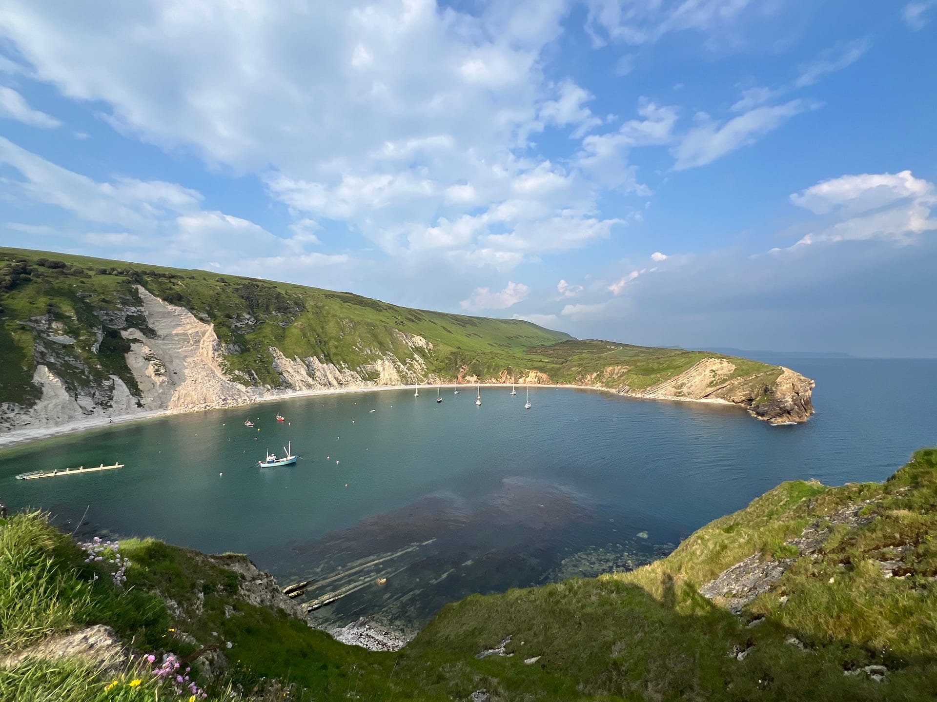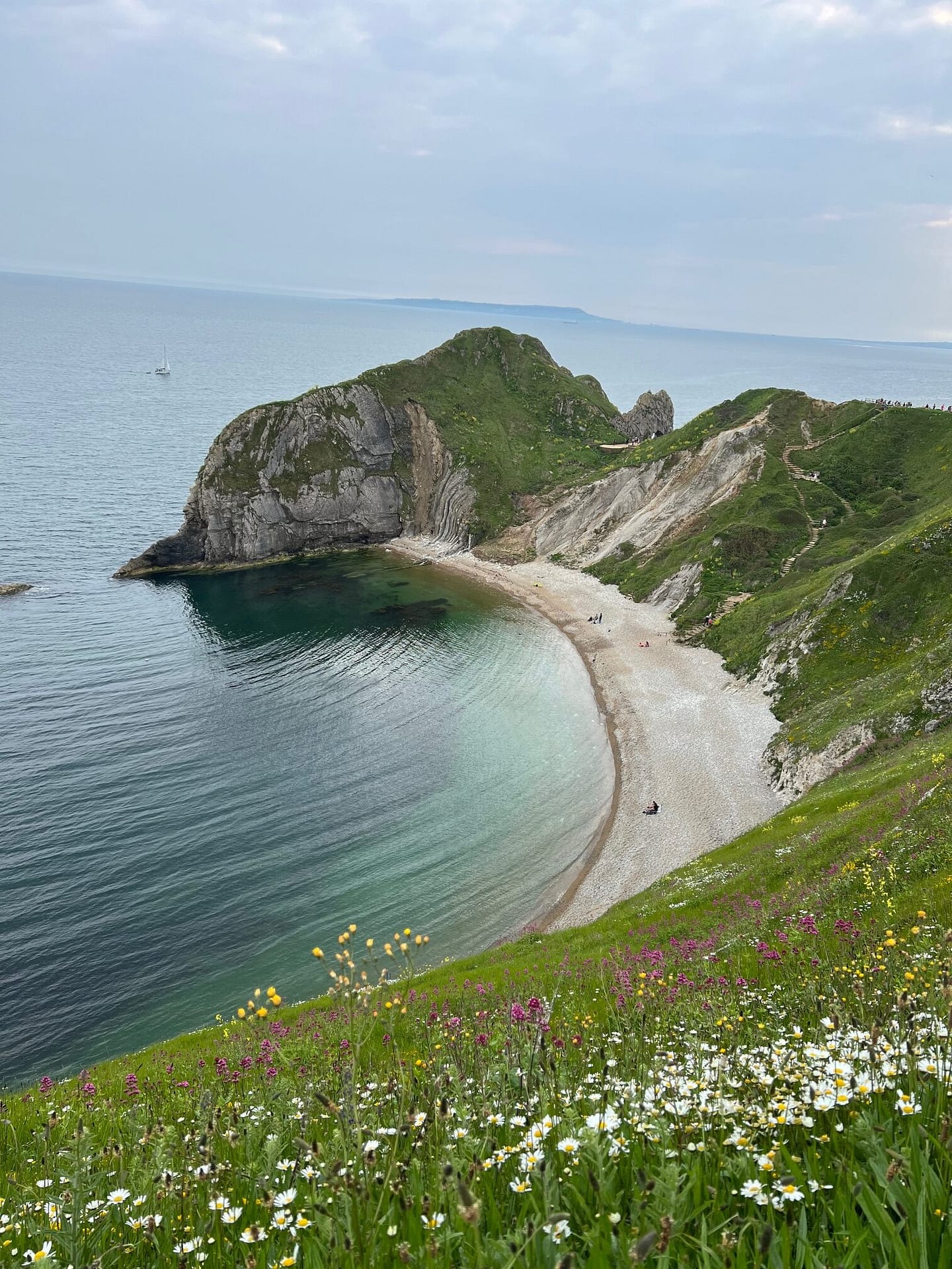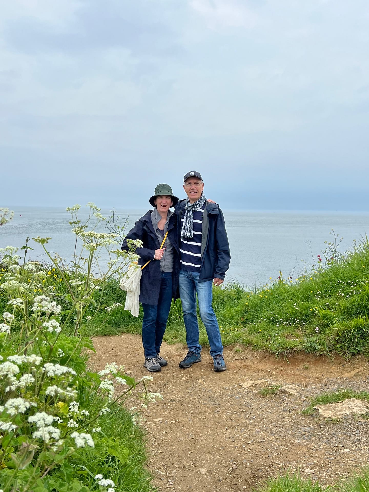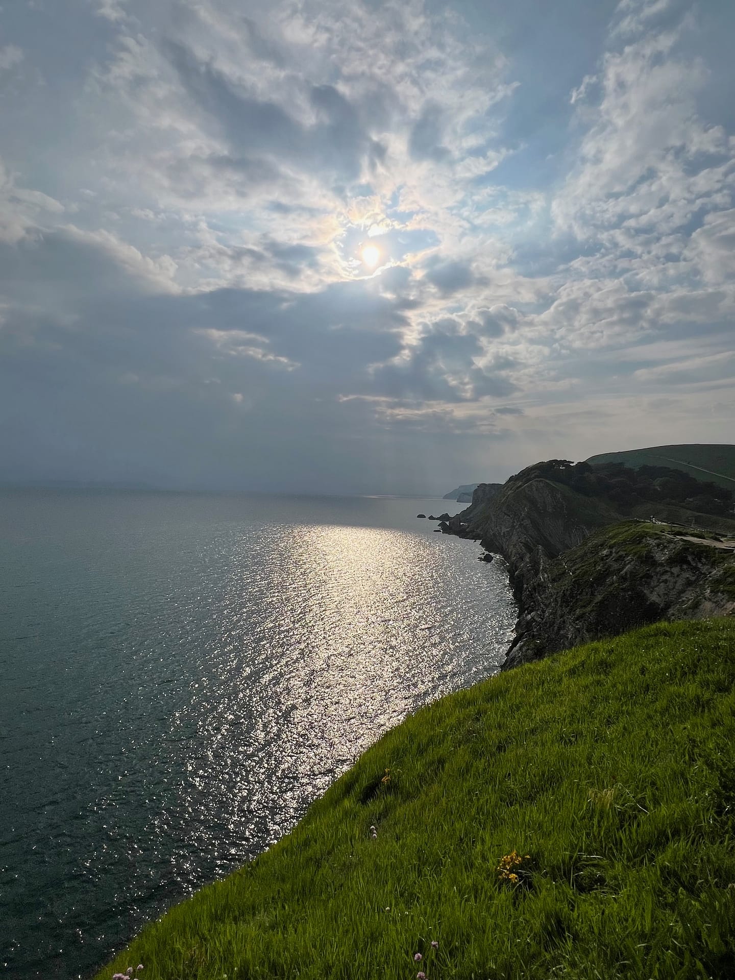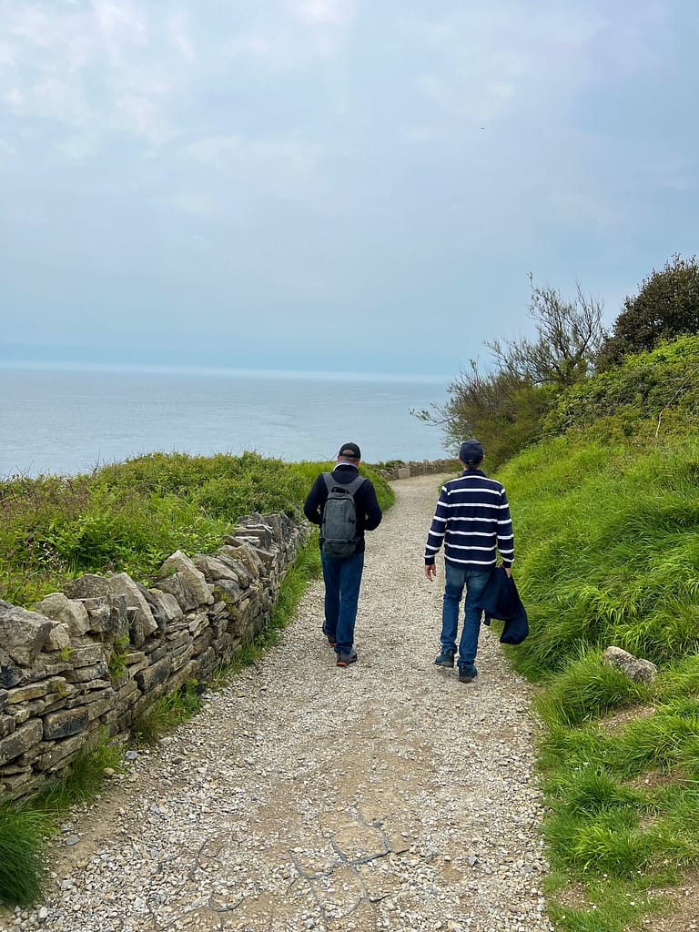 Sur place, on part marcher le long du sentier côtier « South West coast path ». Magnifique chemin, et pas grand monde: c’est top! La météo n’est pas si mal: alors qu’ils avaient annoncé de la pluie, on a même vu du soleil!