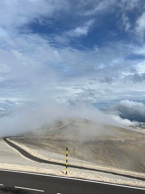 Départ vers 16h de Nyons direction Sault. Le stop incontournable c’est le Mont Ventoux : 21km de montée dans les nuages… arrivée sous le soleil au-dessus des nuages ! c’est magiques! on fait le tour, on fait des photos avant de redescendre de l’autre côté vers Sault.