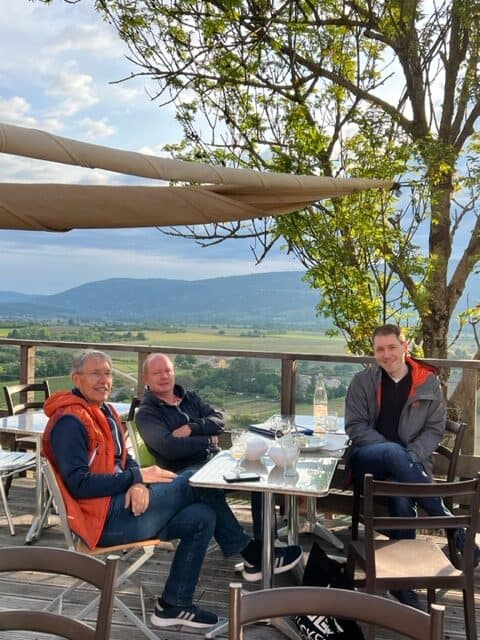 On passe la soirée à l’hotel : apéro sur la terrasse face au Mont Ventoux, puis petit diner simple sur place.