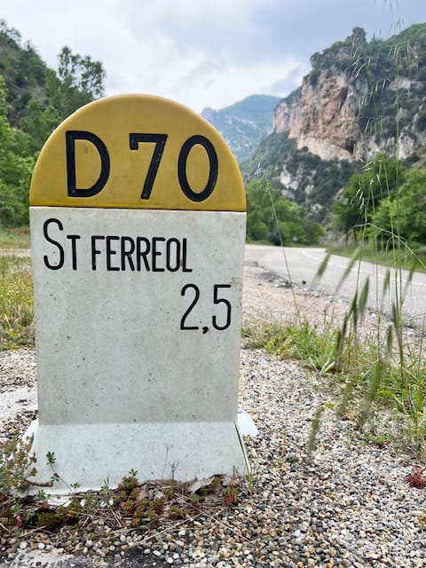 Après un bon petit déjeuner, on se prépare à repartir, sans oublier quelques photos souvenir devant la maison. On part de Montoison vers 10h direction Nyons. On passe par St Nazaire le Désert, puis les superbes gorges de Trente Pas. On filme, on fait des photos… C’est super beau!