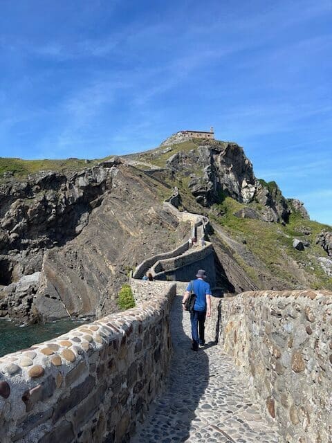 Puis on est allé à GAZTELUGATXE: petit ilot proche de la ville de Bermeo. Pour y aller : grande descente d’1,2 km, puis 241 marches pour monter au sommet… puis retour avec la grande montée jusqu’au parking… bref une belle marche !