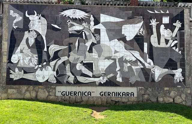 Reproduction en céramique du « Guernica » de Picasso : l’inscription en dessous est une revendication de la ville pour que le tableau original y soit transféré.