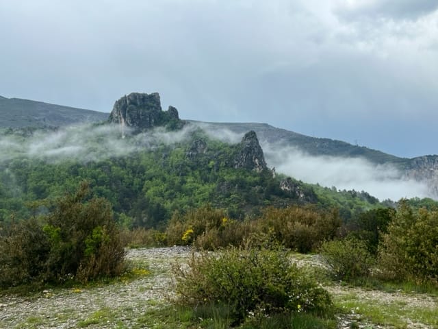 On poursuit notre route direction Moustier Ste Marie. La route est belle mais sous une grosse pluie. Le temps du déjeuner dans le village il ne pleut plus! enfin, on prend la route des gorges du Verdon. La route est très belle, il pleut et il fait beau par alternance. On arrive au « Point Sublime » : l’orage gronde, il pleut un peu mais finalement on profite quand même du paysage incroyable!