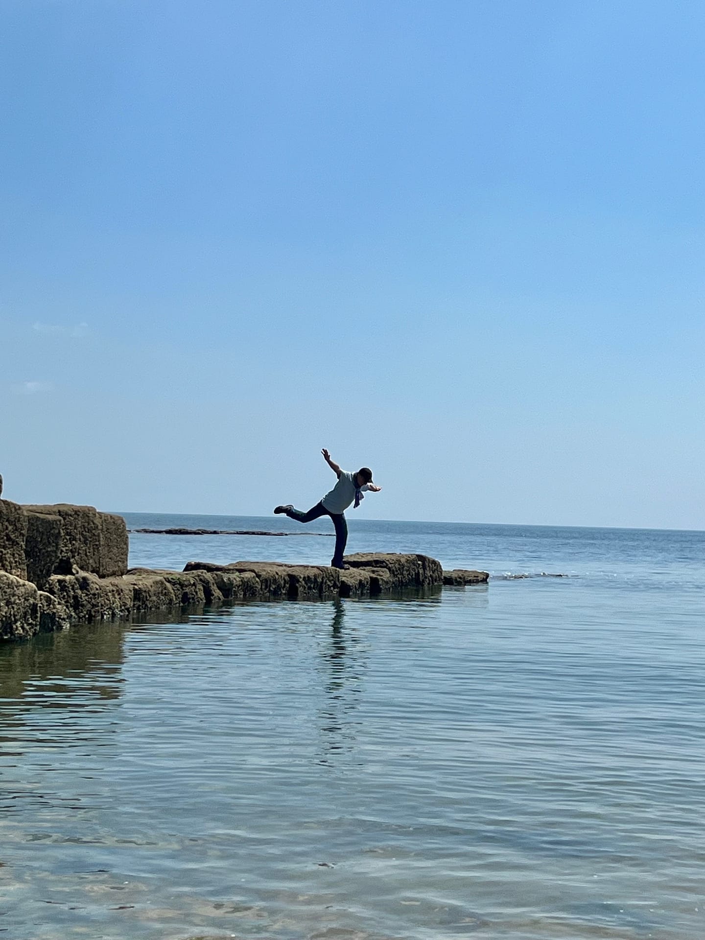 En route, on s’arrête dans un marché paysan pour acheter de quoi faire un pique nique. Pause au bord de la mer pour notre repas de midi, « les pieds dans l’eau » !