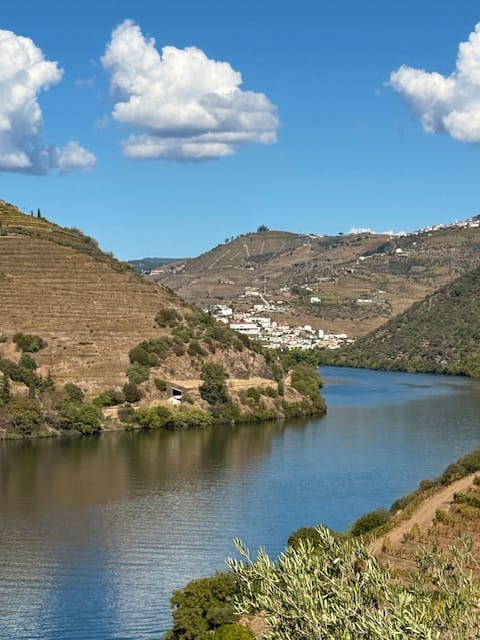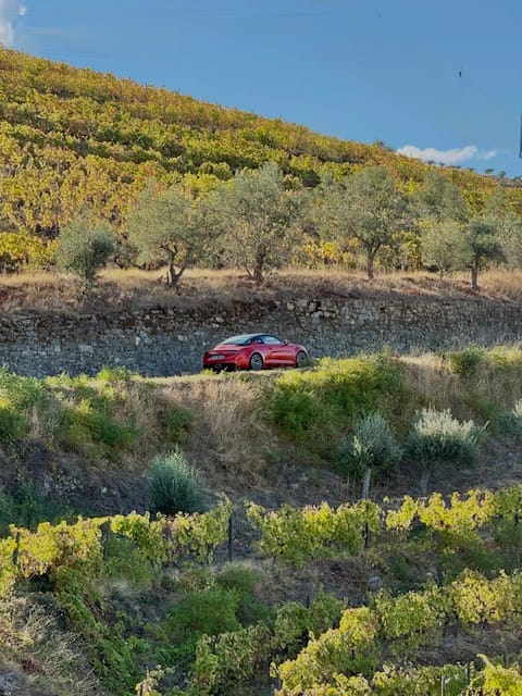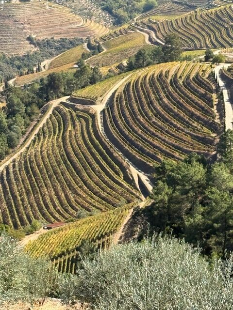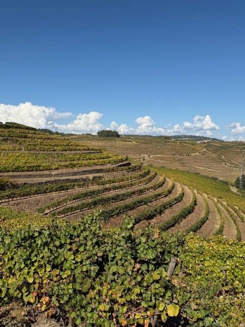 On fait notre pause déjeuner au milieu du paysage magnifique de vignobles en terrasse, classé au Patrimoine Mondial de l’UNESCO. Ici on produit du porto.