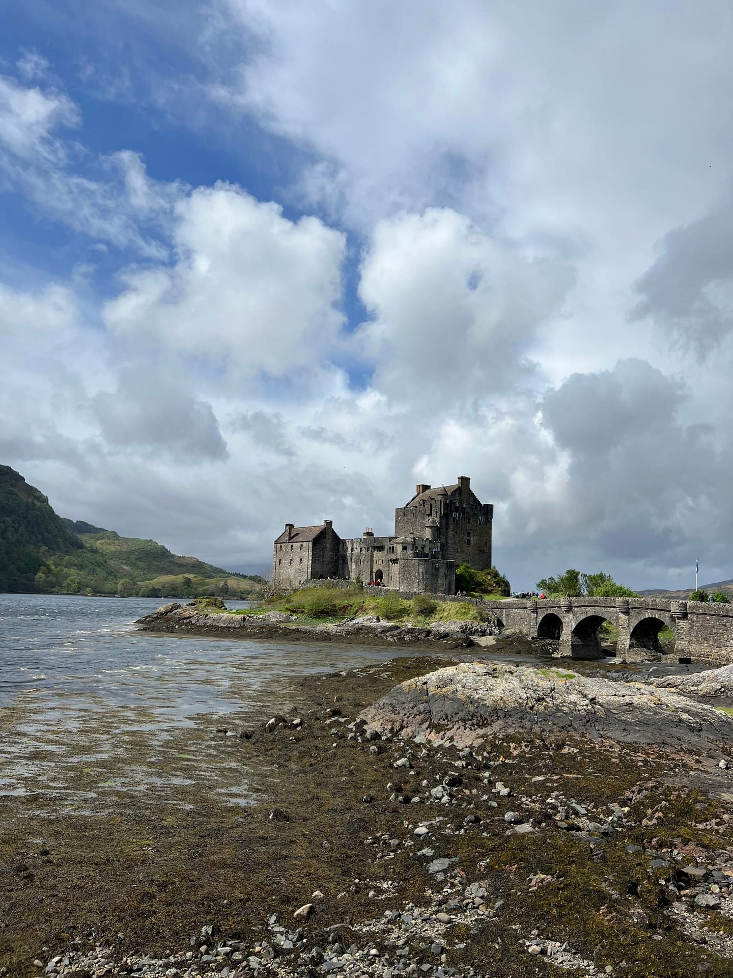 En fin de matinée, on arrive au château EILAN DONAN. Il date du 13e siècle à l’origine, mais il a été détruit par les anglais contre le clan des Mackenzie (1719). Il a été reconstruit au début du 20e siècle. Il a servi de décor à beaucoup de films, dont Highlander ou un James Bond.