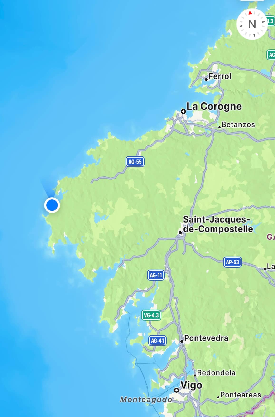 On est parti dans la matinée direction l’ouest. Nous entrons en GALICE.
