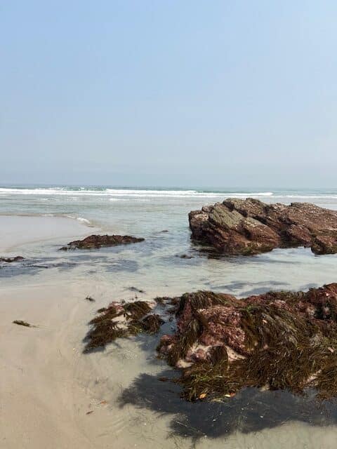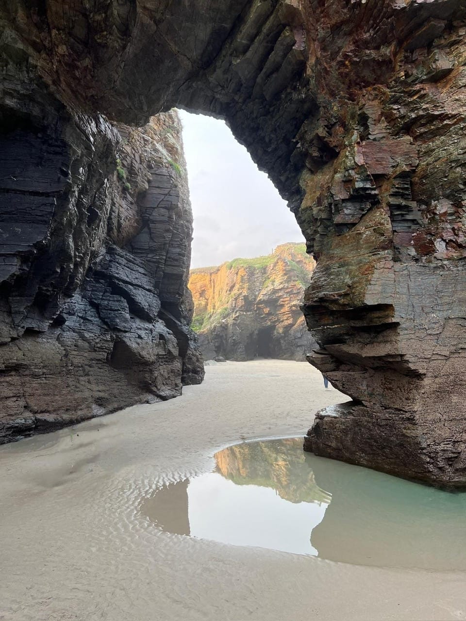Notre 1 er arrêt est sur une plage avec des falaises incroyables, qu’il faut absolument voir à marée basse. On a de la chance, on y va directement sans regarder et c’est marée basse. Il fallait réserver, on le fait sur place et ça marche : on peut y aller. La réservation est obligatoire car il y a tellement de monde qu’ils limitent le nombre de visiteurs par jour. Il faut dire que l’endroit est impressionnant!