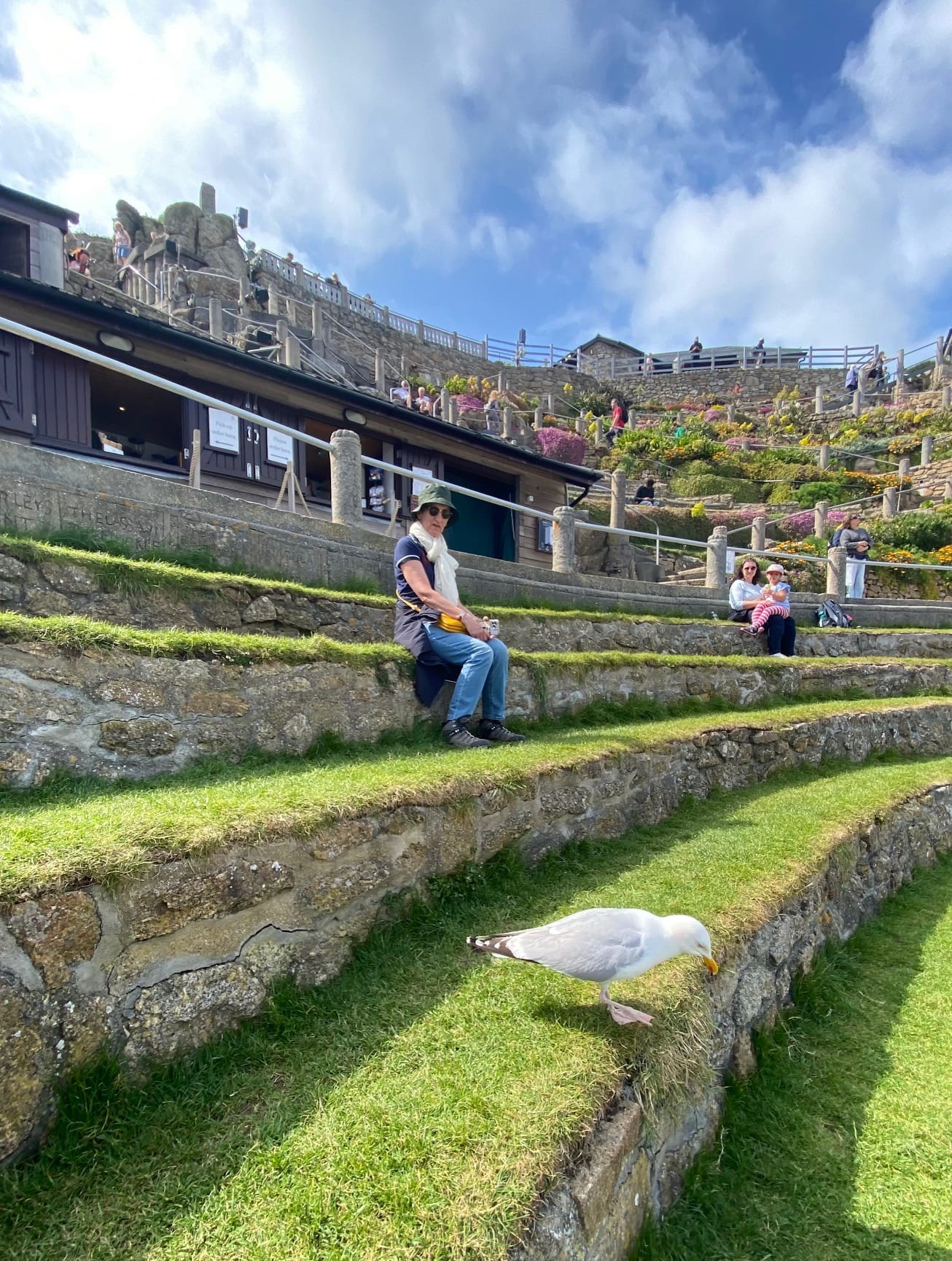 On repart pour aller visiter le MINACK THEATER: c’est un théâtre qui a été construit dans la roche de la falaise, dans les années 1930. Il a été agrémenté de beaucoup de plantes et fleurs, c’est très beau!