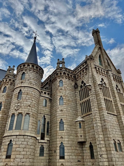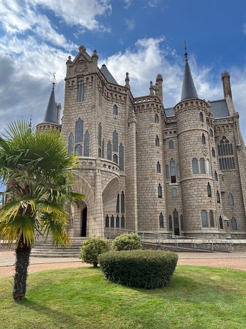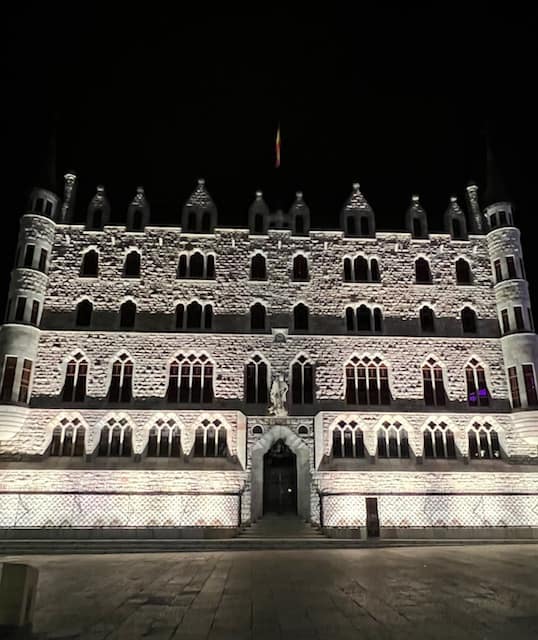2e arrêt à ASTORGA, où on visite un palais de GAUDI. C »est un ancien palais épiscopal du XIXe siècle : merveilleux ! Un autre rare palais de Gaudi en dehors de la Catalogne.