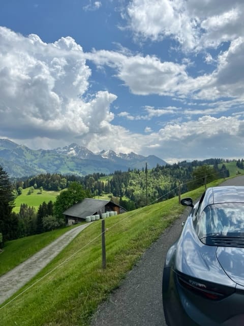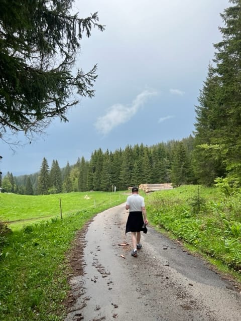 Nous baladons en Suisse, dans des coins super beaux! On fait un tour à Gstaad, puis dans les environs de Gruyères. Ensuite on monte aux Rousses. Achat de fromage local, puis direction notre chambre d’hôtes. On arrive vers 17h30. On a le temps d’une balade à pied dans la forêt environnante.