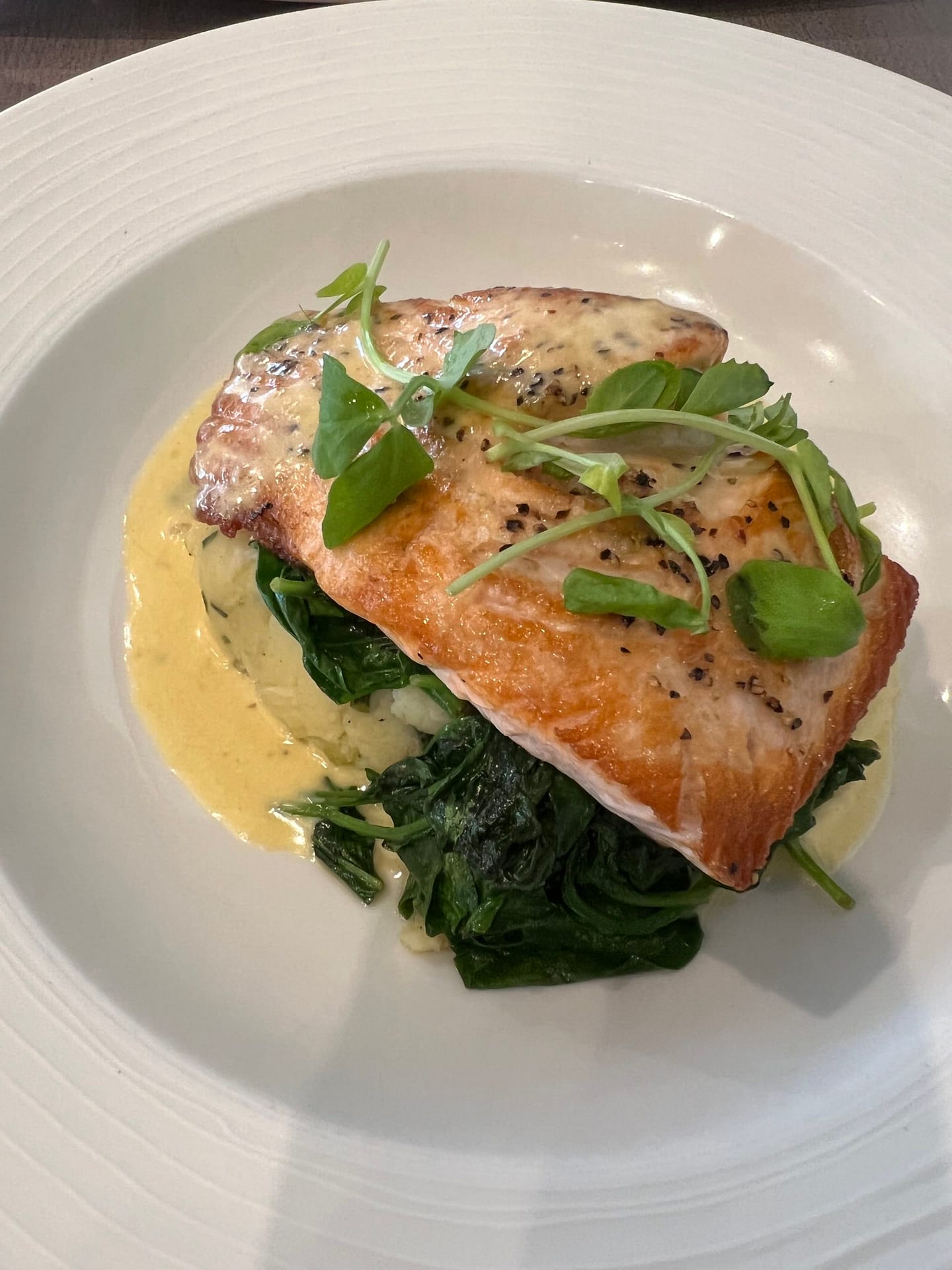 saumon d’Ecosse, p de terre écrasées, épinards