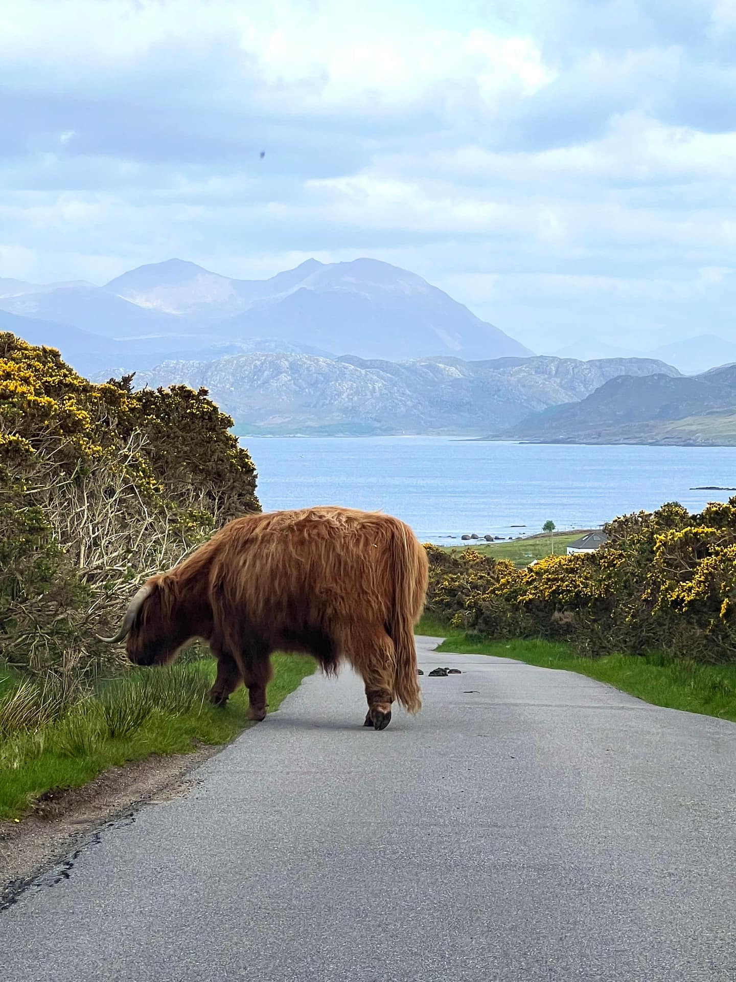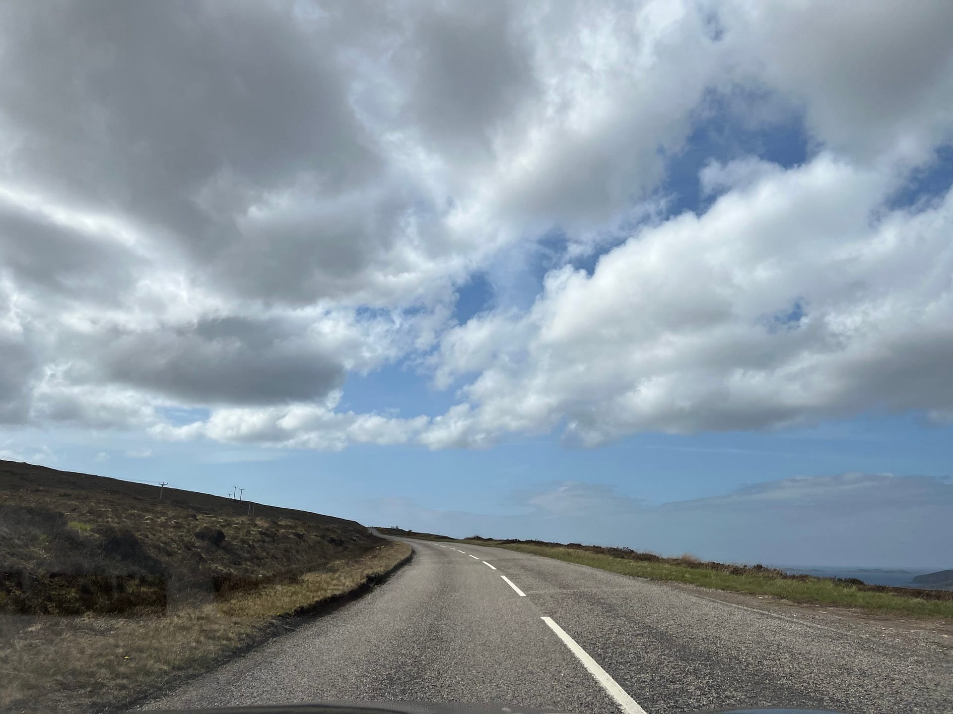 A noter que cette route est la fameuse NORTH COAST 500 : environ 500 miles (830 km) de routes mythiques des Highland. C’est la « route 66 » écossaise ! On va la suivre un bon moment.