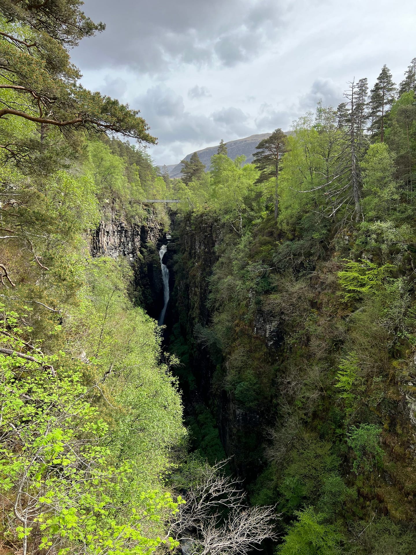 On s’arrête aussi voir des gorges impressionnantes : CORRIESHALLOCH, les gorges les plus spectaculaires de Grande-Bretagne : environ 1,5km de long, 60m de profondeur et 10m de large. Il y a une cascade de 50m de haut, qu’on admire depuis un promontoire.