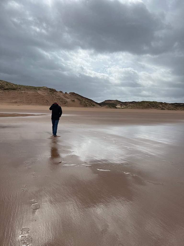 Petit déjeuner maison. On part vers 10h, d’abord en direction de la pointe de la péninsule où on loge : RED POINT : magnifique plage, à laquelle on arrive en traversant des près avec des moutons!